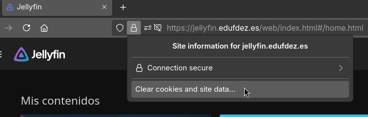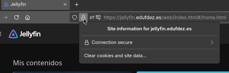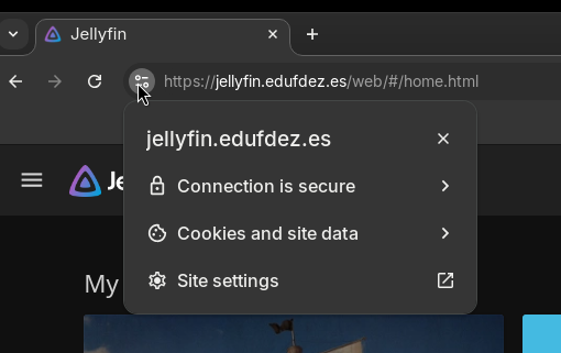 Ahora volvemos a cargar jellyfin.edufdez.es (o puedes borrar todo lo que hay detrás del .es y darle al intro) y ya debería estar.
