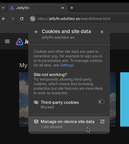 Ahora volvemos a cargar https://wiki.edufdez.es/extra/j-cache jellyfin.edufdez.es (o puedes borrar todo lo que hay detrás del .es y darle al intro) y ya debería estar.